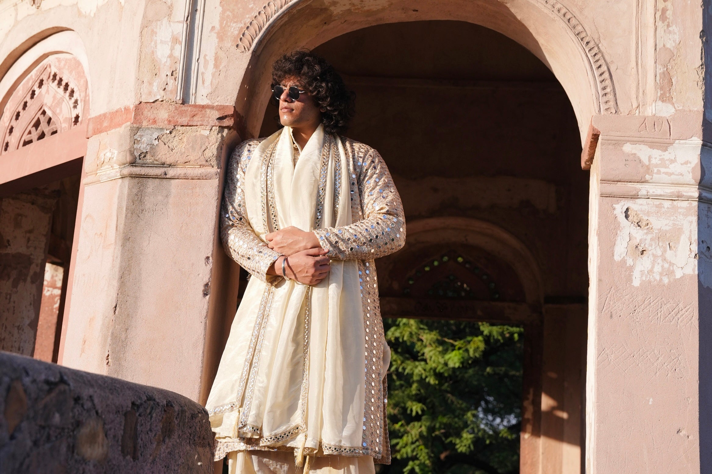 Rudra Golden Mirrorwork Kurta for Men | Designer Ethnic Wear by Roohdari